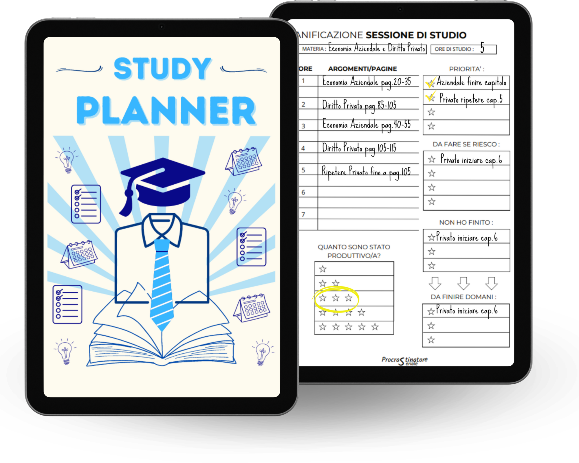 Nel capitolo 3 imparerai il metodo definitivo per la pianificazione e come assemblare le tecniche che hai imparato per creare un metodo di studio PERFETTO (in base alla tua facoltà e al tuo tipo di apprendimento).